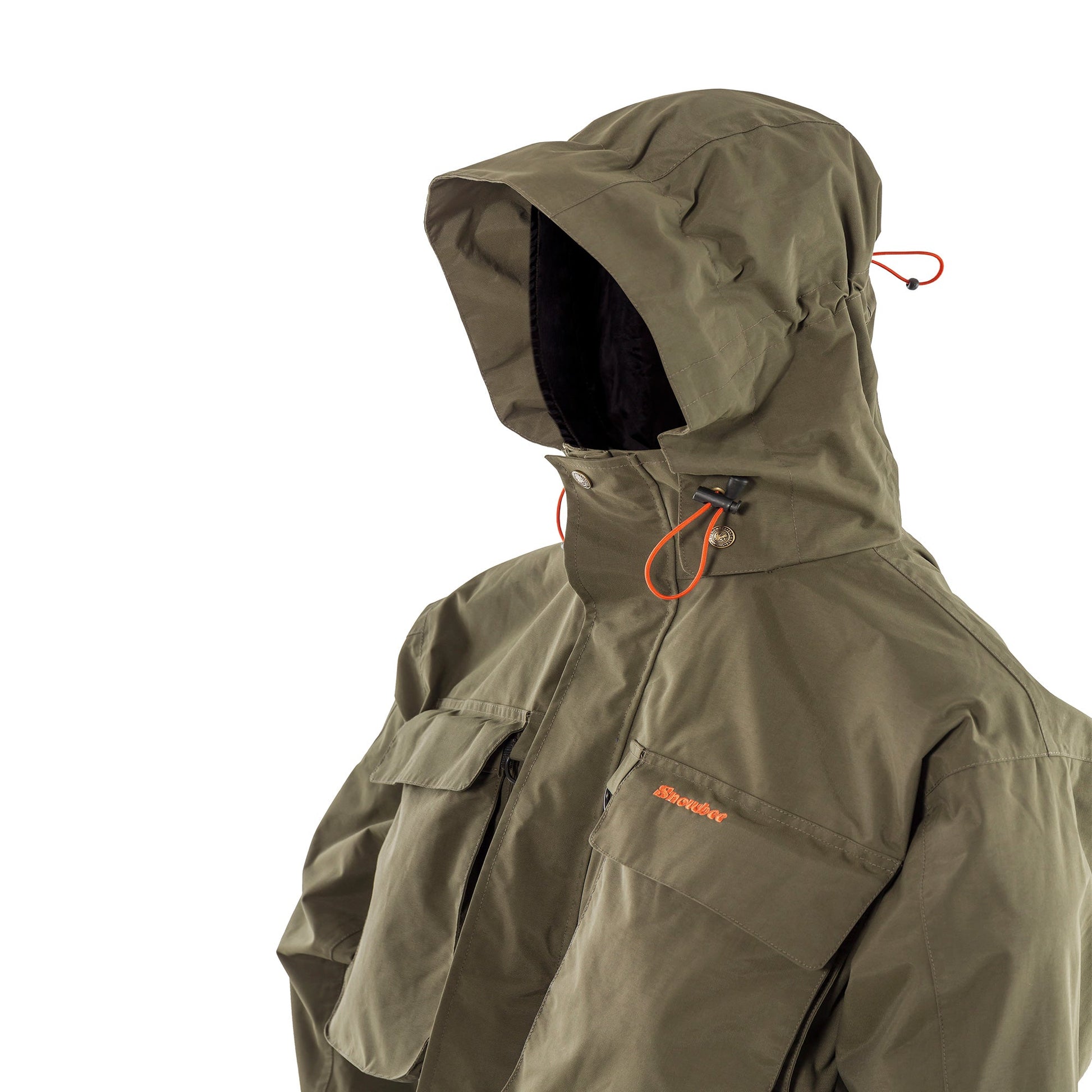 The Prestige² Wading Jacket is 2” longer than many on the market, so it can also be worn in a boat, with the over-trousers. The 3-panel integral hood is fully adjustable and can be rolled away into the collar when not in use. Tough nylon front zipper with our “trademark” double front storm flaps with stud fastening and inner rain “gutter.” The two rain-proof zippered pockets under the storm flap, but outsize the main zipper, allow for quick, easy access and are ideal for cell phones, car keys, and other small items.