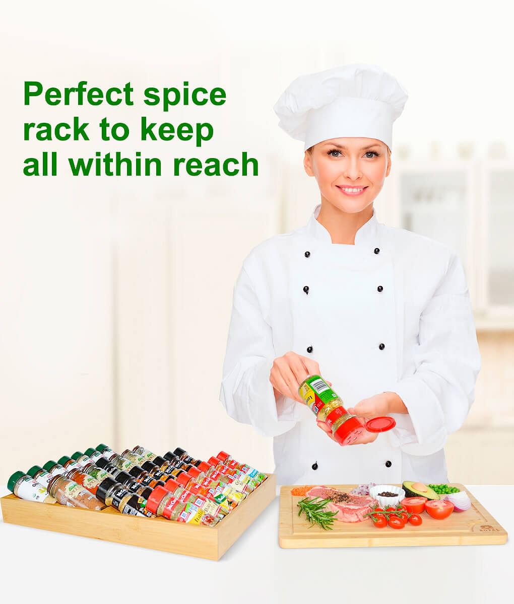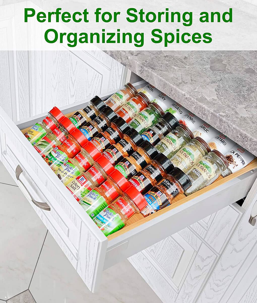 One of Royal Craft Wood’s finest and most beloved drawer spice rack organizers. Known for its consolidated and easily accessible design. Enjoy the superior functionality of a 4 tier spice rack. Perfect for adventurous home chefs and OCD fanatics;) Also makes a great gift for loved ones who enjoy spending time in the kitchen and whose love language is food! Alleviate some of their stress when cooking with a thoughtful gift that'll show how much you truly care.