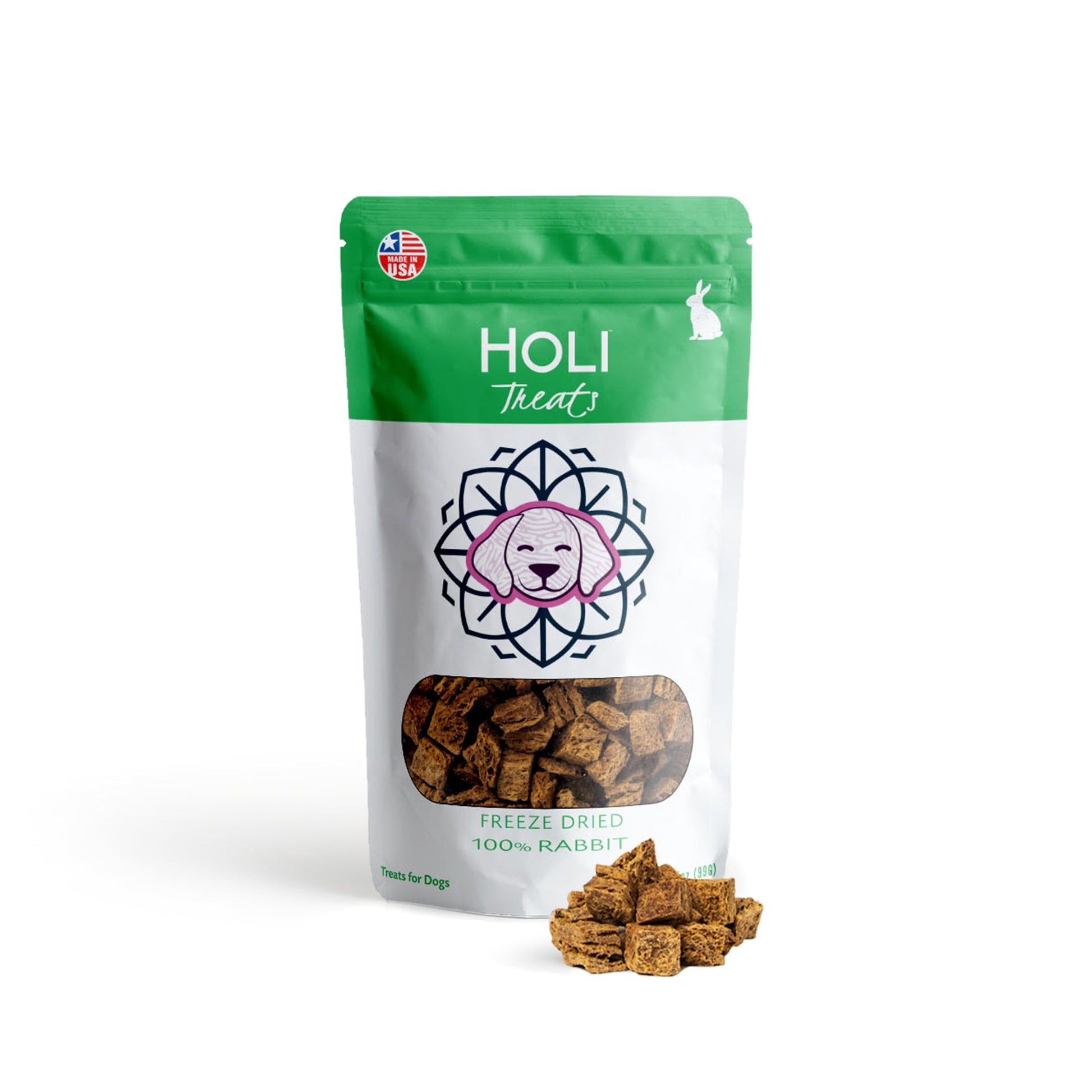 High in B12, and low in cholesterol, rabbit meat is more than just a tasty treat. As a novel protein it is an ideal choice for pups with sensitivities or just as new and delicious flavor. Our rabbit treats are freeze-dried to preserve its natural flavor and nutrition. We source from local farmers and produce in USDA facilities to ensure quality and traceability.