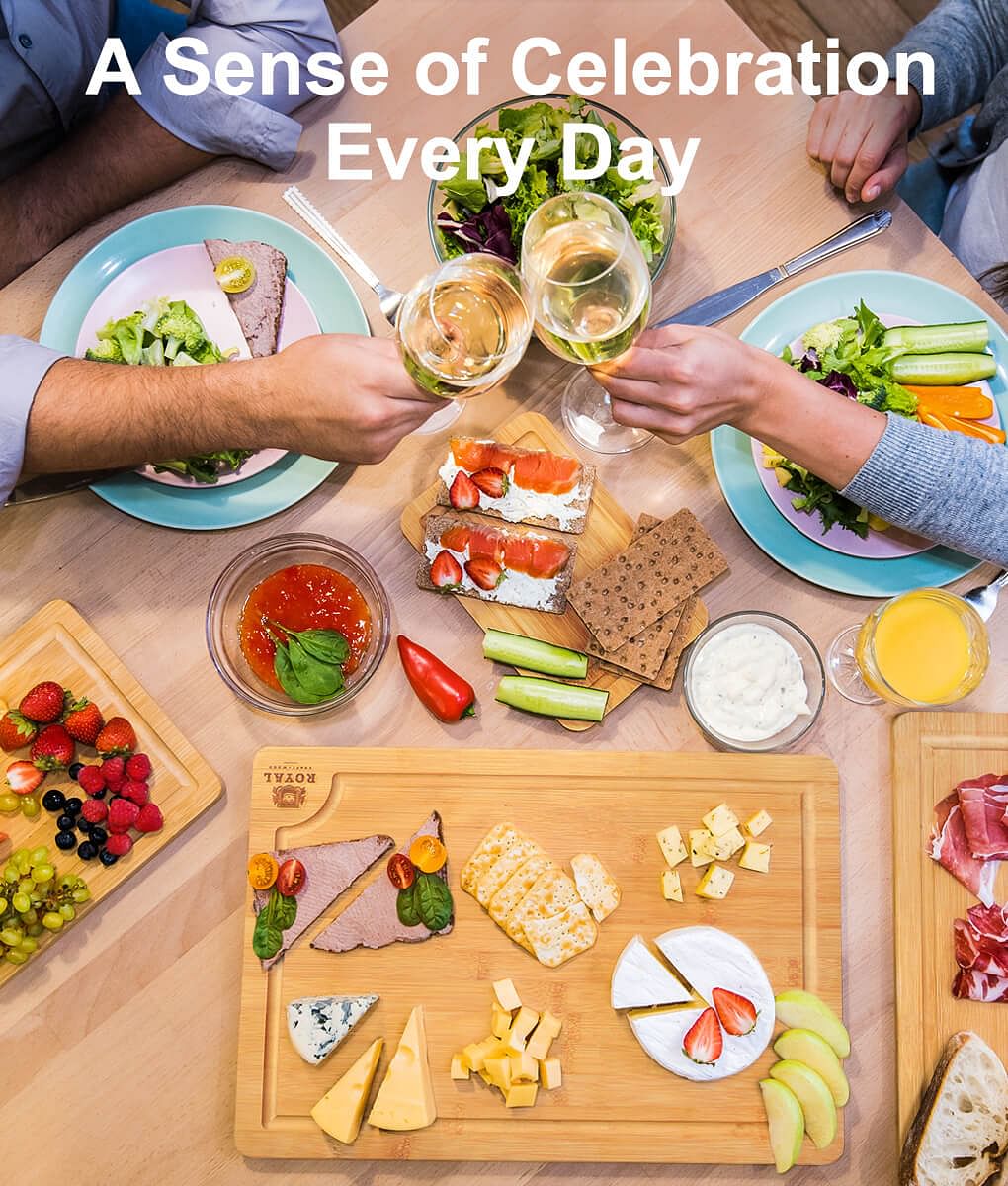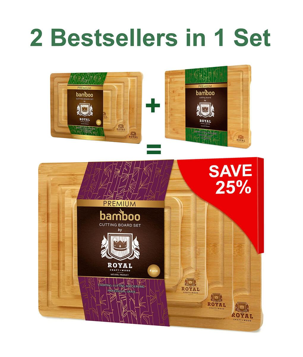 CARVING BOARD SET: With a deep respect for nature and love for Mother Earth, you'll be pleased to find that our cutting boards are made of raw, organic bamboo. Minimally refined to maintain bamboo's most natural form and let nature take its course;) This collection will give you a farm-to-table reality in the comfort of your home. Its robust, authentic composition also doubles as a beautiful kitchen display piece.